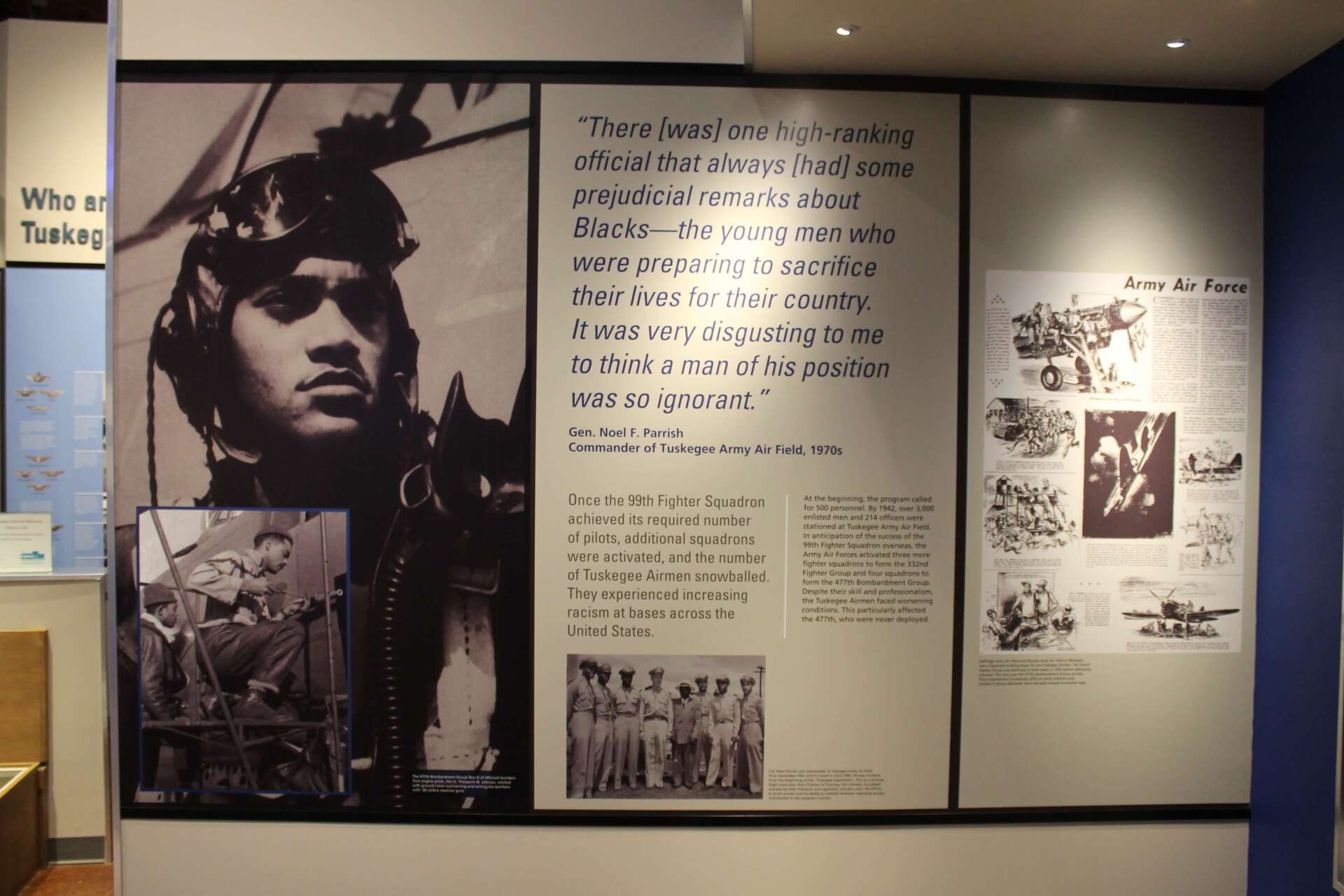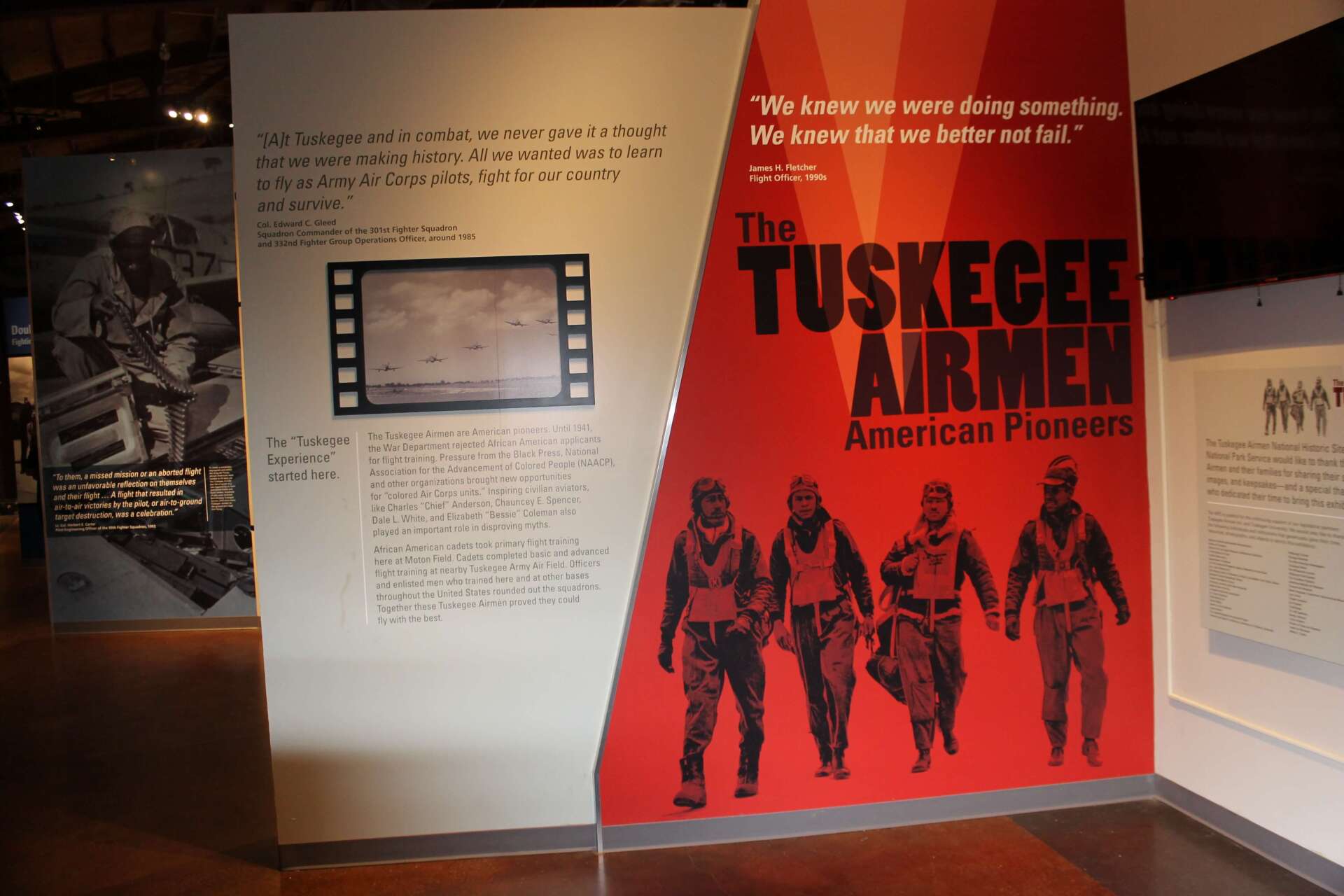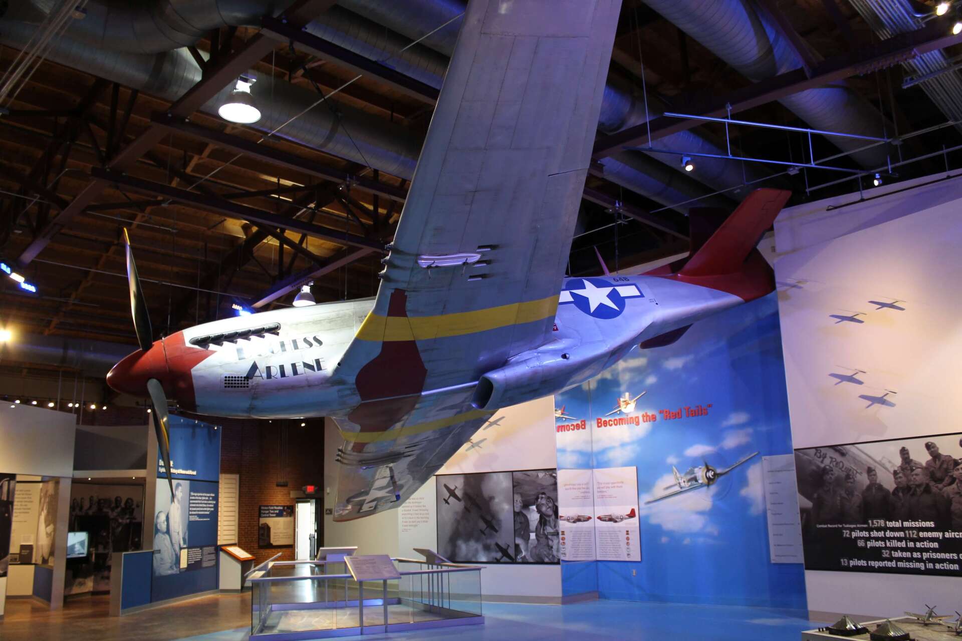 At the Tuskegee Airmen National Historic Site, we get a truly legendary perspective of the airmen after they've been deployed overseas. You can see for yourself a P-51 Mustang suspended from the ceiling in the Hangar 2 Museum. This was a spectacular World War II fighter plane flown by the fantastic Tuskegee Airmen Red Tails.